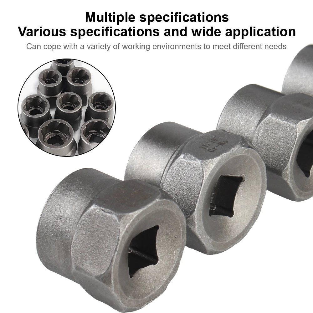 Each extractor is engineered to grip tightly onto worn or rounded bolts for effective removal.